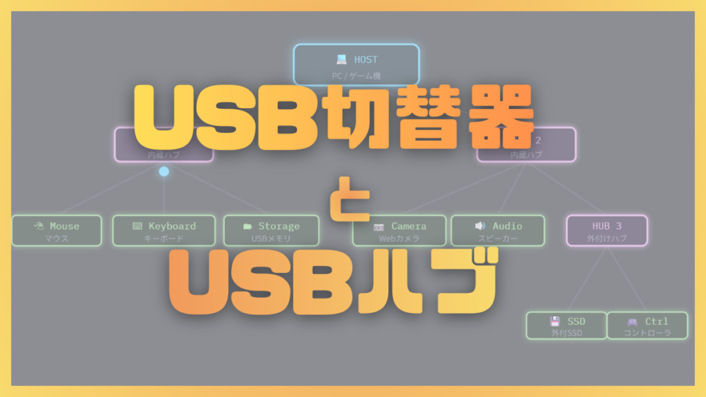 USBハブとUSB切替器って、名前も見た目もちょっと似ててややこしいですよね。USBハブがUSB切替器の代わりに使えそうな感じもします。 でも、やってることは真逆なんです。一言でいうと USBハブは、PCにつながるデバイスを増やす USB切替器は、根元のPCを切... -