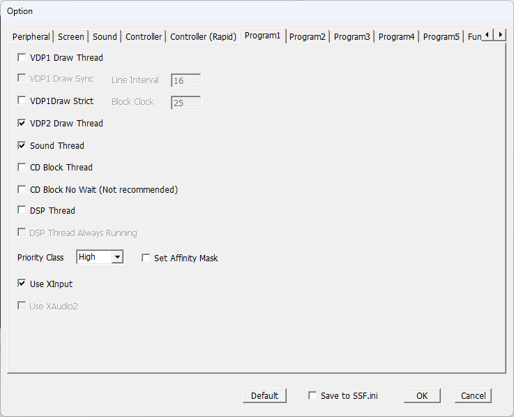 SSF の設定画面で 「Program1」タブ を開き以下のように設定します。