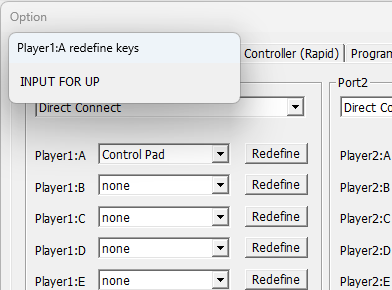 Redefine ボタンを押して、実際のボタン入力を割り当てていきます。